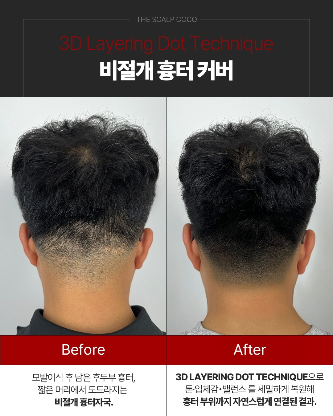 비절개 모발이식 후 생긴 후두부 흉터 커버 케이스입니다.